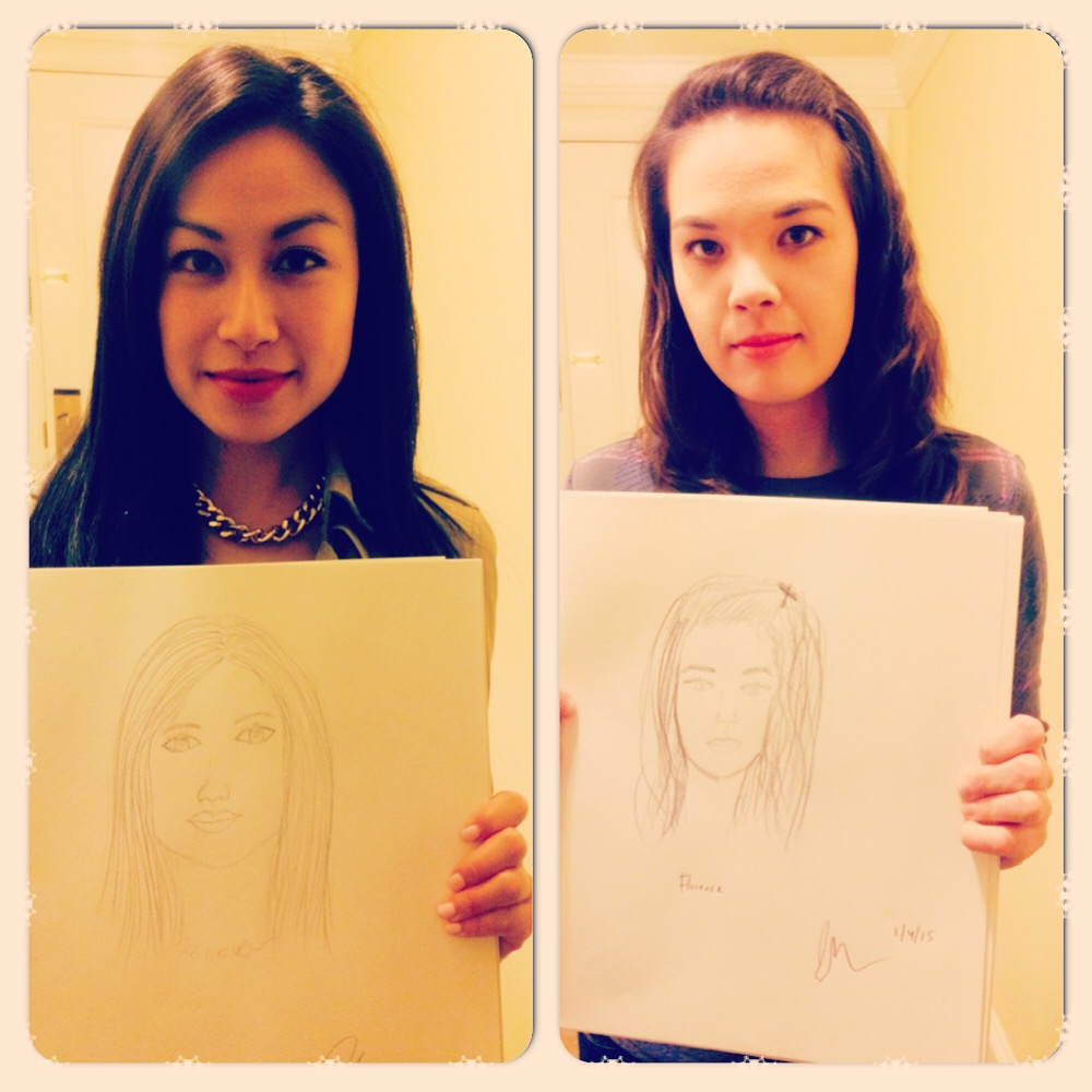 I drew her, she drew me! Entertaining ourselves while waiting 🙂